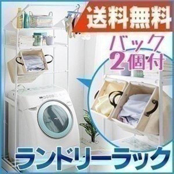 バッグ1個あたり:2kg洗濯物を入れるのに便利なバッグ付ランドリーラックです。軽くて使い勝手の良い布製バッグは内側が撥水加工になっています。小物が落ちにくいフラット棚付です。