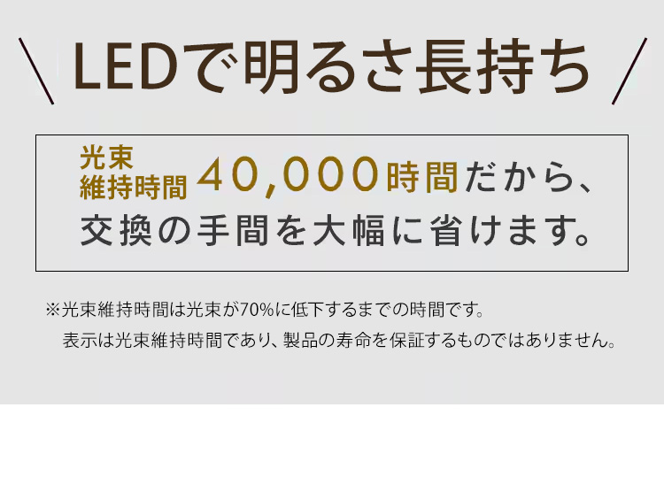 (※寿命は光束が70%に低下するまで時間です。表示は設計寿命であり、製品の寿命を保証するものではありません。)