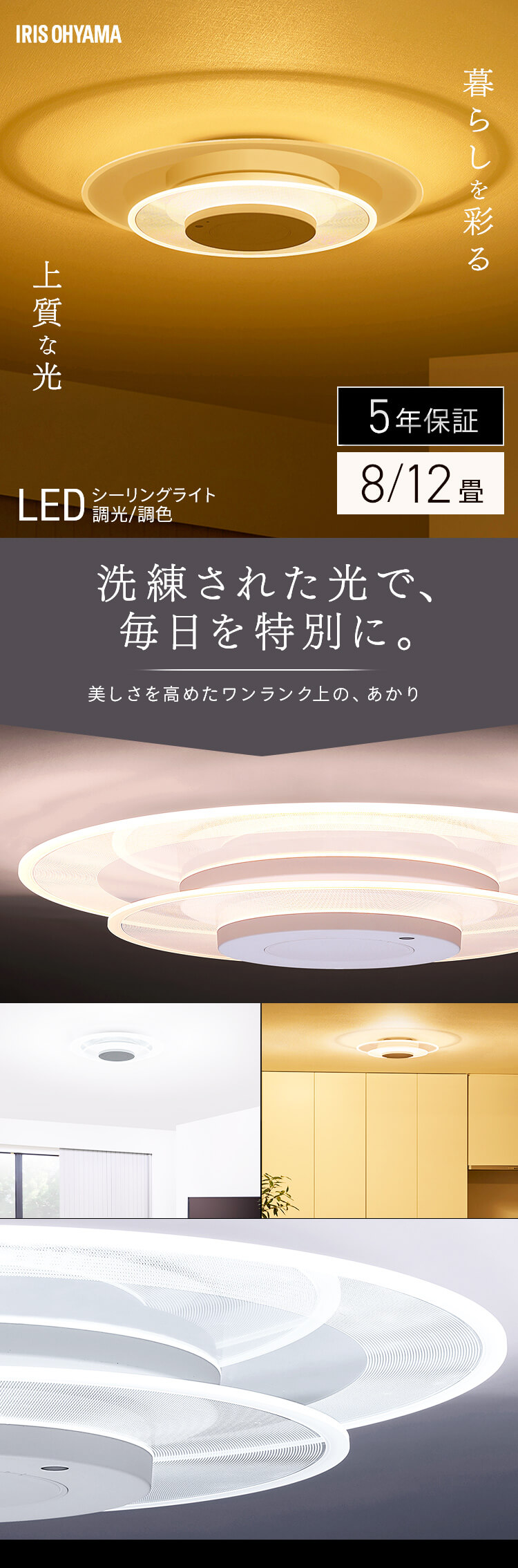(検索用:シーリングライト おしゃれ led ledシーリングライト 12畳 照明器具 照明 天井照明 LED 節電 省エネ 調光 調色 電球色 昼白色 昼光色 円形 丸型 5200lm リモコン付き 4967576648103)●適用畳数