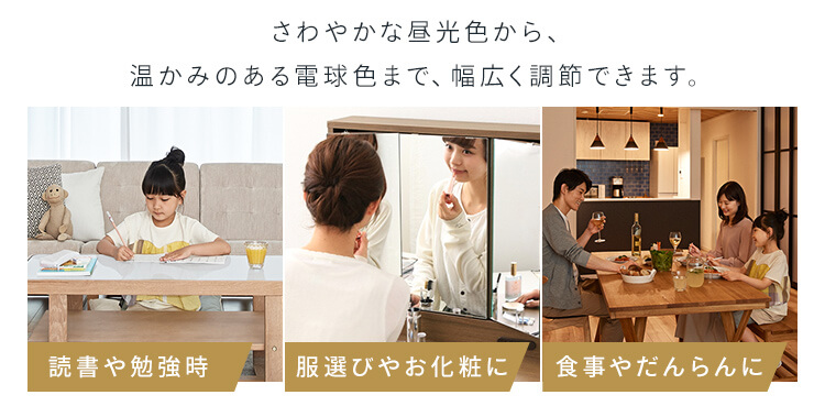 温かみのある電球色から、さわやかな調光色まで、幅広く調整出来ます。
