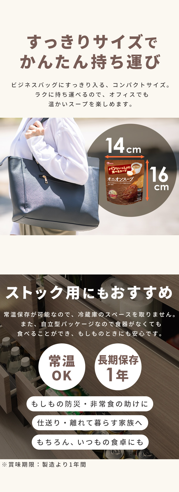持ち運びラクラクで、デスクでも外出先でも温かいスープをすぐに楽しめます。