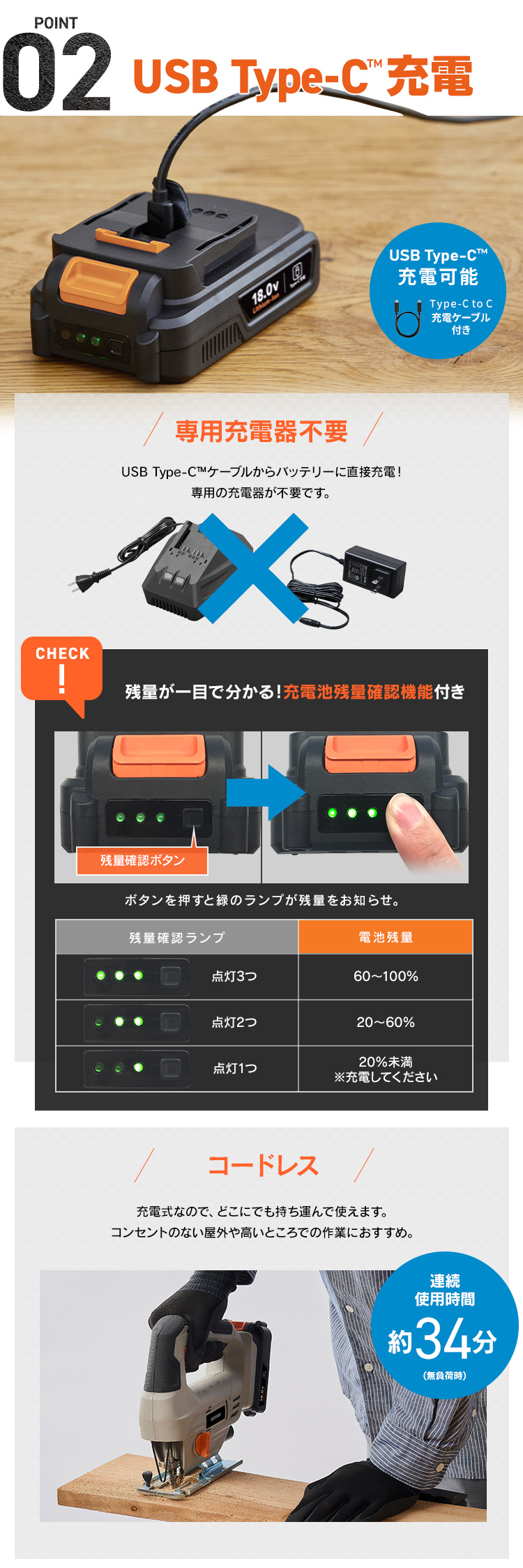 ハイパワー×軽量、充電式ジグソー[18V]。