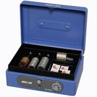 シリンダー錠とダイヤル錠のダブルロックの手提げ金庫です。シリンダー錠とダイヤル錠が付いているので、中のものを安全に保管することができます。小銭の整理に便利なコイントレーが付いています。