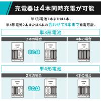 単3形電池2本または4本、単4形電池2本または4本の合わせて4本まで充電可能。