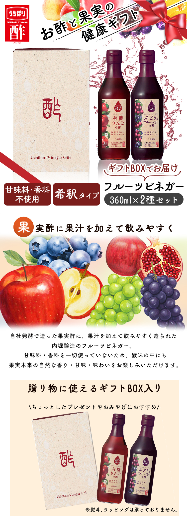 (検索用:内堀 フルーツビネガー 飲用酢 りんご酢 ぶどうとブルーベリー 水割り 炭酸割 飲む酢 4970285092266)