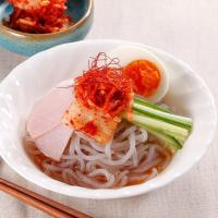ピリッと辛いキムチ風味のスープが良く合います。夏の大人気商品です。