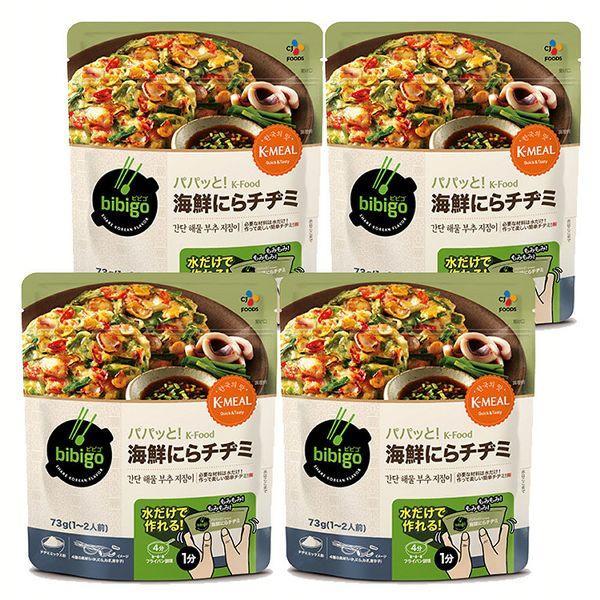 ニラやネギ、イカなどの具材入りで、水を入れて混ぜて焼くだけの、簡単調理で作れる本格的なチヂミです。