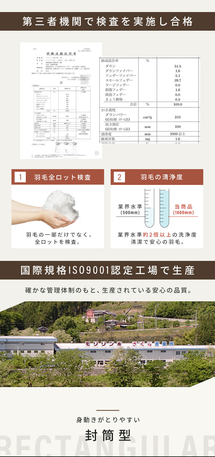 中材:ダウン50%フェザー50% フード部分ポリエステル100%