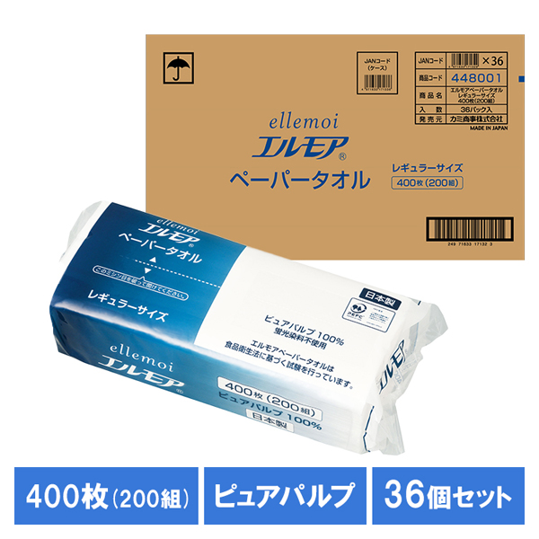 (検索用:タオルペーパー カミ商事 紙タオル ピュアパルプ 中判 レギュラー お手拭き 吸水性 ポップアップ ellemoi キッチン 洗面台 リビング 4971633171329)