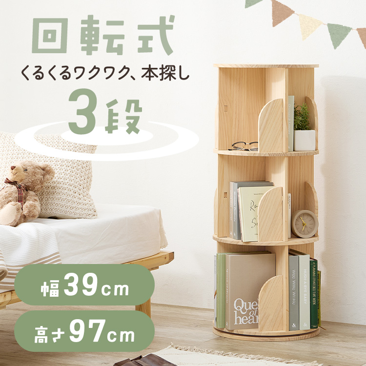 本棚 回転ラック 回転本棚 3段ラック回転ラック3段 ナチュラル MUD-6427NA (代引不可)(TD)