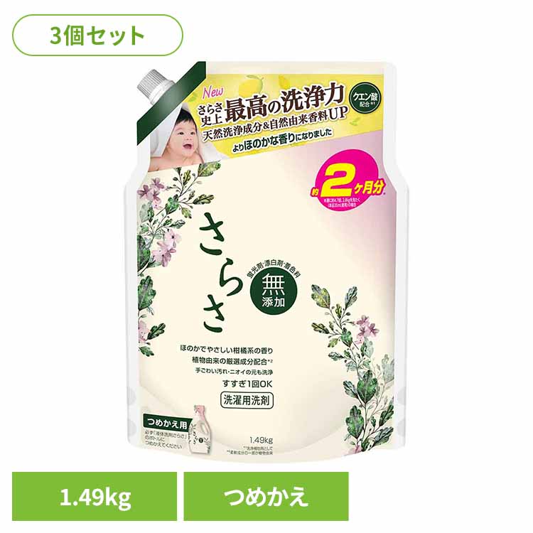 New さらさ史上最高の洗浄力 天然洗浄成分UPクエン酸配合*1蛍光剤・漂白剤・着色料 無添加植物由来の厳選成分配合*2手ごわい汚れ・ニオイの元も洗浄天然酵素を配合した処方家族みんなの衣類もOK肌を優しく包み込む*1 洗浄補助剤として *2 柔軟成分の一部が植物由来使用上の注意:子供の手の届くところに置かない。