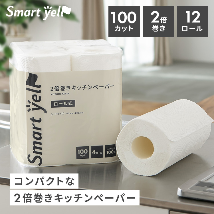 キッチンペーパー 3個セット 12ロール 2倍巻 100カット ロール スマートエール ピュアパルプ ペーパータオル キッチンタオル 【SYCP】