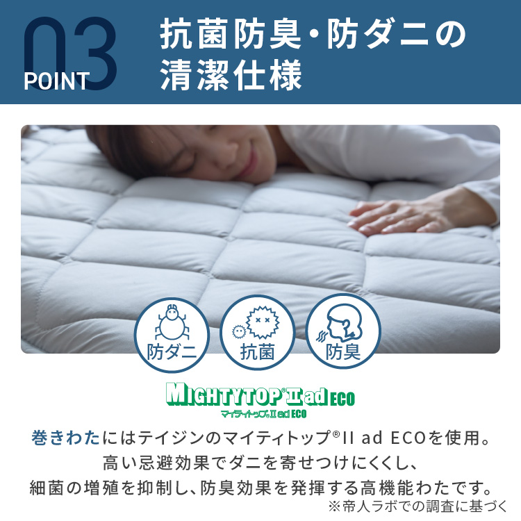中材:抗菌防臭防ダニわたテイジンマイティトップ2 ADECO