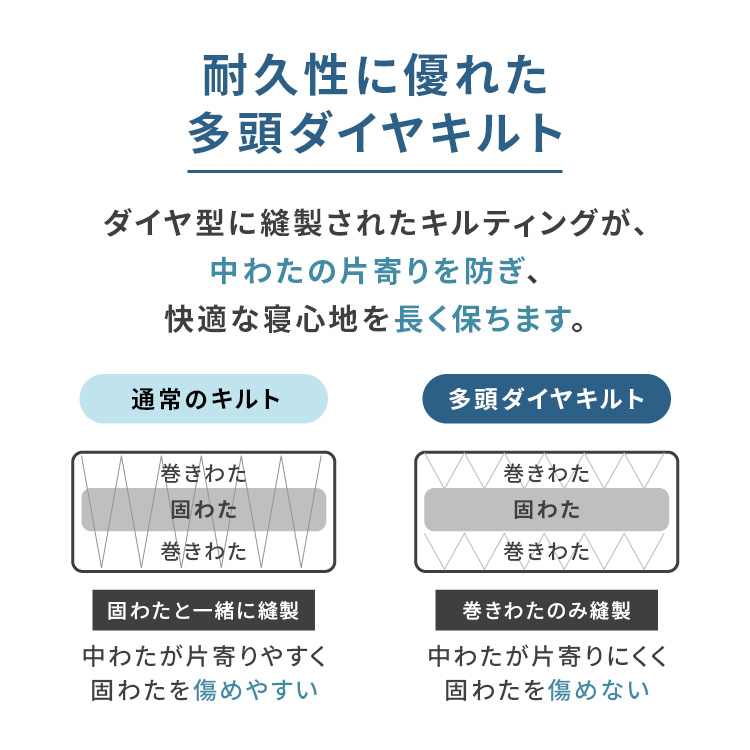 厚みが復元しない場合は陰干しやふとんをはたくなどしていただくとふっくら仕上がります。