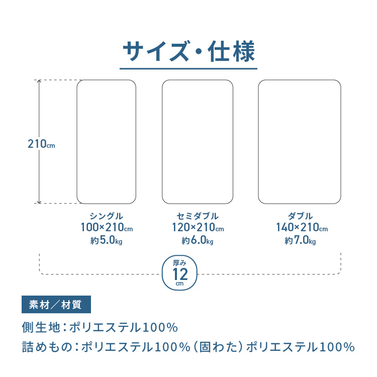 幅約100×奥行約210×高さ約12(シングルサイズ)