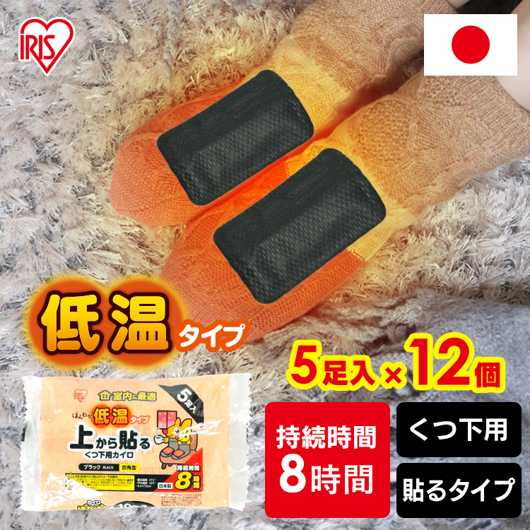カイロ 低温 使い捨て 貼る 防寒 あったか 冬 防寒対策 冷え 防災 備蓄 靴下 室内 ほんわか低温タイプ 上から貼るくつ下用カイロ 5足入り 12個セット
