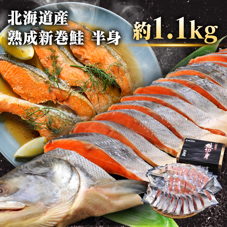 塩新巻鮭 鮭 新巻鮭 ギフト 姿切身 半身 個包装 冷凍 北海道産低温熟成新巻鮭 姿切身半身(個包装)1.1kg (代引不可) (TD)