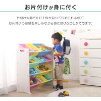 収納ケース付のおもちゃラックです。収納ケースが取り外し可能なので、直接ケースを取り出しての持ち運びが可能です。