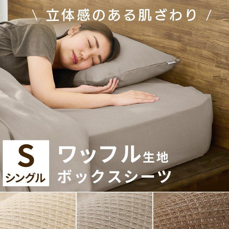(検索用:ボックスシーツ マットレスカバー 寝具カバー カバー シーツ ワッフル生地 ワッフル 無地 吸水 吸湿 ナチュラル シングル 100×200×30 4967576633888 4967576633895 4967576633901)