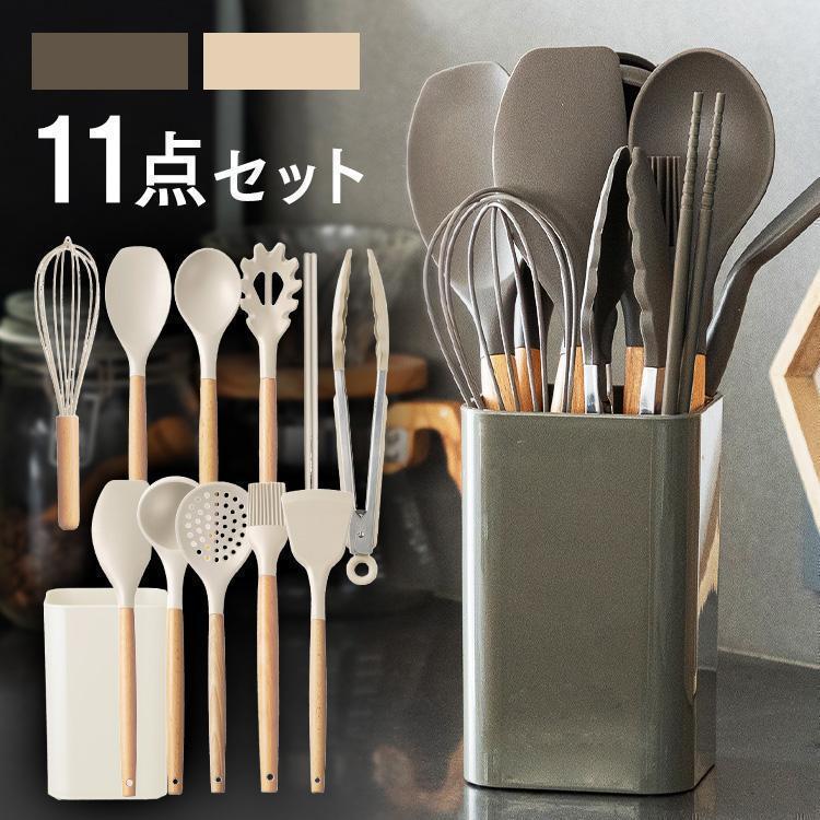 (検索用:11点セット キッチンツール スタンド付き シリコーン フライ返し お玉 スプーン深 スプーン浅 パスタシャベル ヘラ 菜箸 トング 泡立て器 ハケ ツールスタンド 料理 調理 4967576646345 4967576646352)
