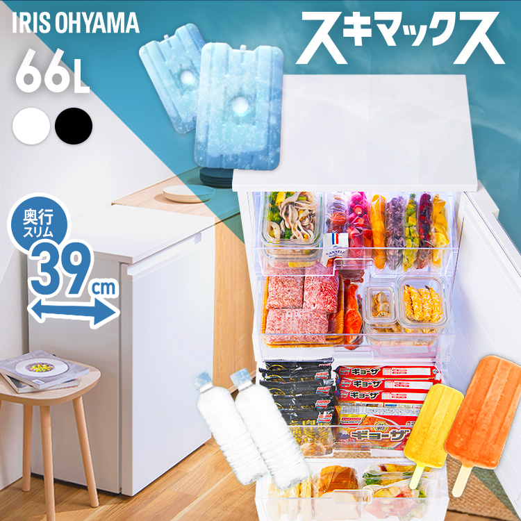 (検索用:冷凍庫 小型 スリム 省エネ 右開き 66L ノンフロン フリーザー 家庭用 小さい 小さめ 幅55.2cm 奥行39cm 高さ80cm 温度設定 急冷 セカンド冷凍庫 おしゃれ 4967576653527 4967576653534)
