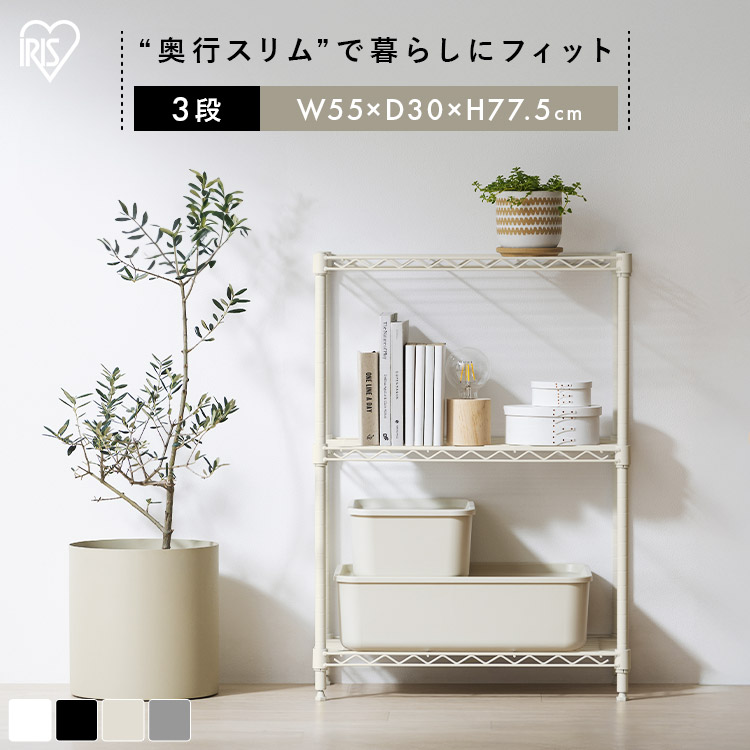 (検索用:スチールラック 幅55 奥行30 黒 白 メタルラック 3段 スリム スペパ カラーメタルラック おしゃれ ホワイト ブラック ダークグレー グレージュ 棚 メタルシェルフ オープンラック アイリスオーヤマ 4967576777612 4967576777629 4967576777636 4967576777643)