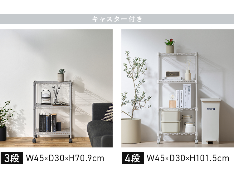 棚板を外せば、ランドリーラックやゴミ箱上ラックにも。