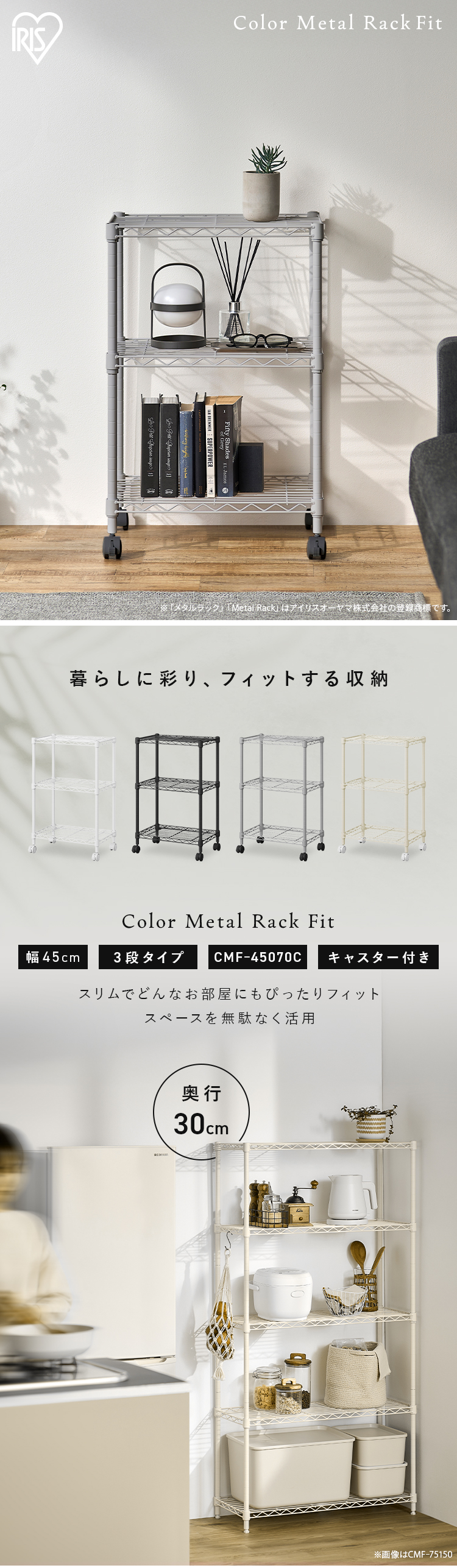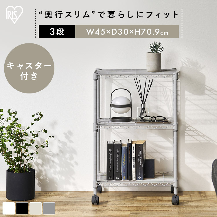 (検索用:スチールラック 幅45 奥行30 黒 白 メタルラック 3段 スリム スペパ キャスター付 カラーメタルラック おしゃれ ホワイト ブラック ダークグレー グレージュ 棚 メタルシェルフ アイリスオーヤマ 4967576777698 4967576777704 4967576777711 4967576777728)
