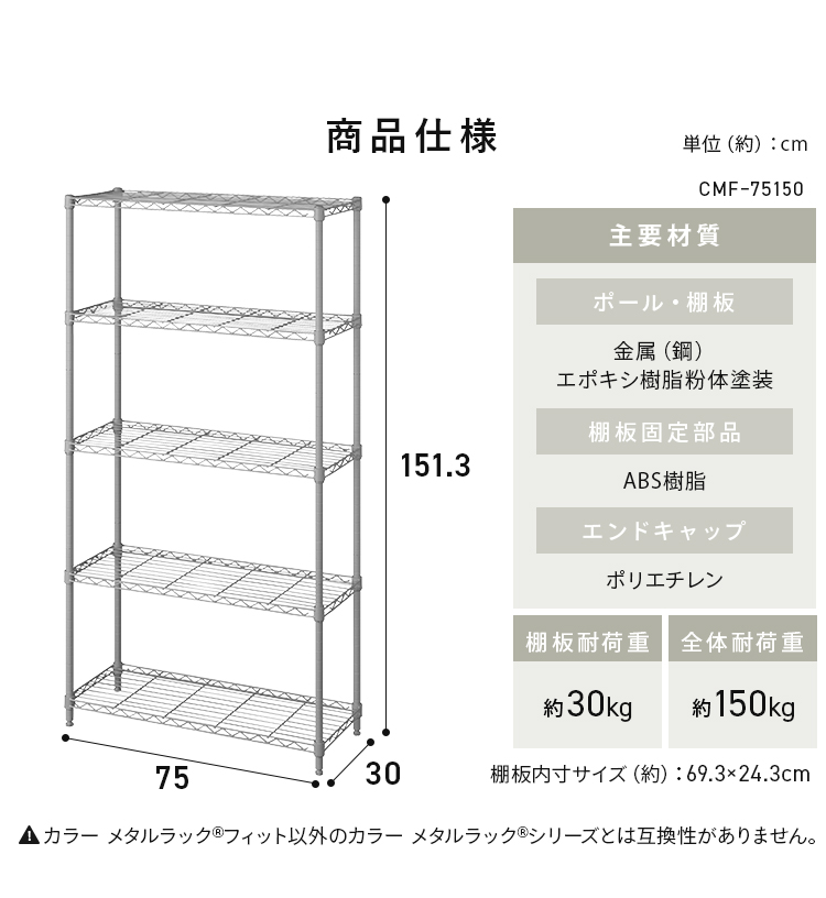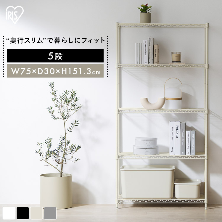 (検索用:スチールラック 幅75 奥行30 黒 白 メタルラック 5段 スリム スペパ カラーメタルラック おしゃれ ホワイト ブラック ダークグレー グレージュ 棚 メタルシェルフ オープンラック アイリスオーヤマ 4967576777810 4967576777827 4967576777834 4967576777841)