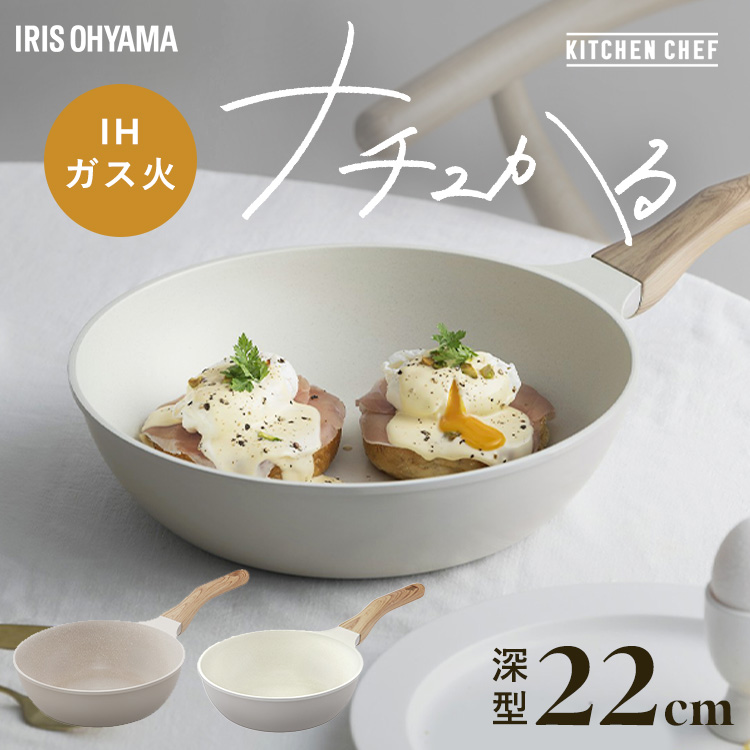 (検索用:フライパン 22cm ih対応 ガス火対応 深型 鍋 炒め鍋 IH 軽い 軽量 PFOA PFOS フリー おしゃれ 北欧 かわいい 白 くっつきにくい こびりつきにくい フッ素コーティング 22センチ 調理器具 4967576796798 4967576796804)