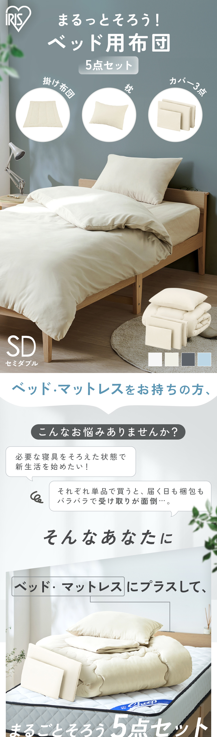 ベッド派におすすめ!カバーまで揃う嬉しい5点セット!