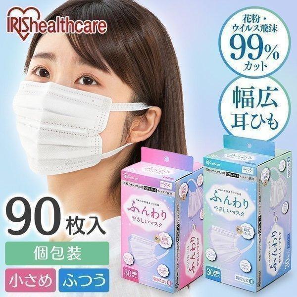 マスク 不織布 アイリスオーヤマ 不織布マスク 花粉 ふつう 小さめ ふんわりやさしいマスク やわらか耳ひも 90枚入 PK-FY30L PK-FY30S
