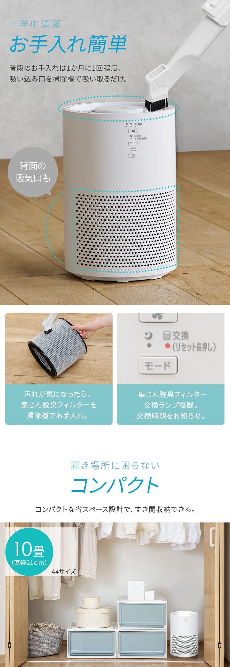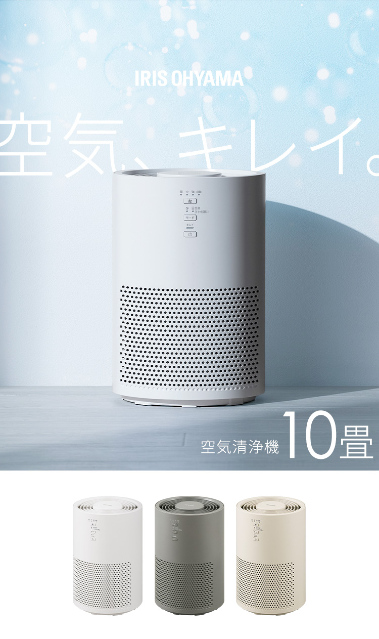 (検索用:空気清浄機 ペット 10畳 コンパクト 省エネ スピード空気清浄 集じん 脱臭 3Dナノチャージ HEPAフィルター タバコ臭 ペット臭 ニオイ対策 PM2.5 ホコリ 黄砂 ハウスダスト リビング 寝室 玄関 トイレ 花粉対策 家庭用 4967576790796 4967576790802 4967576790819)