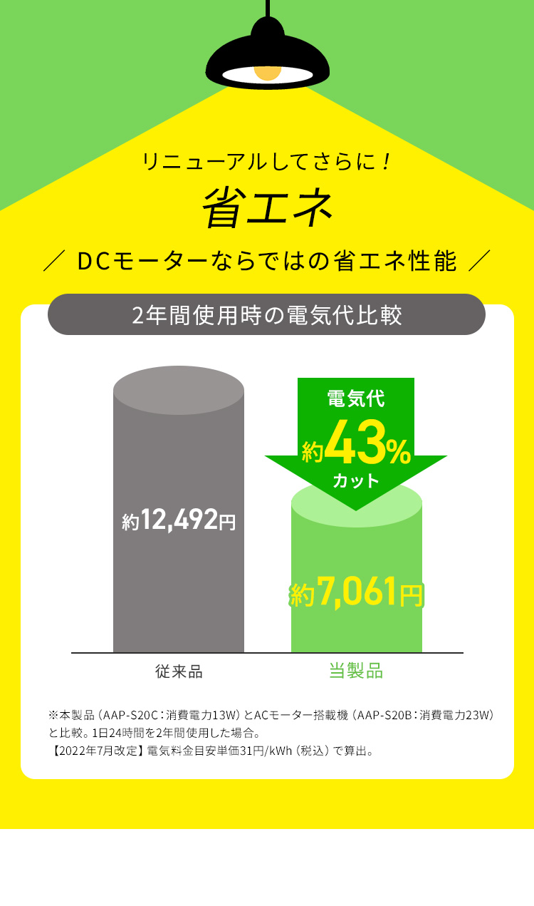 DCモーターならではの省エネ性能。
