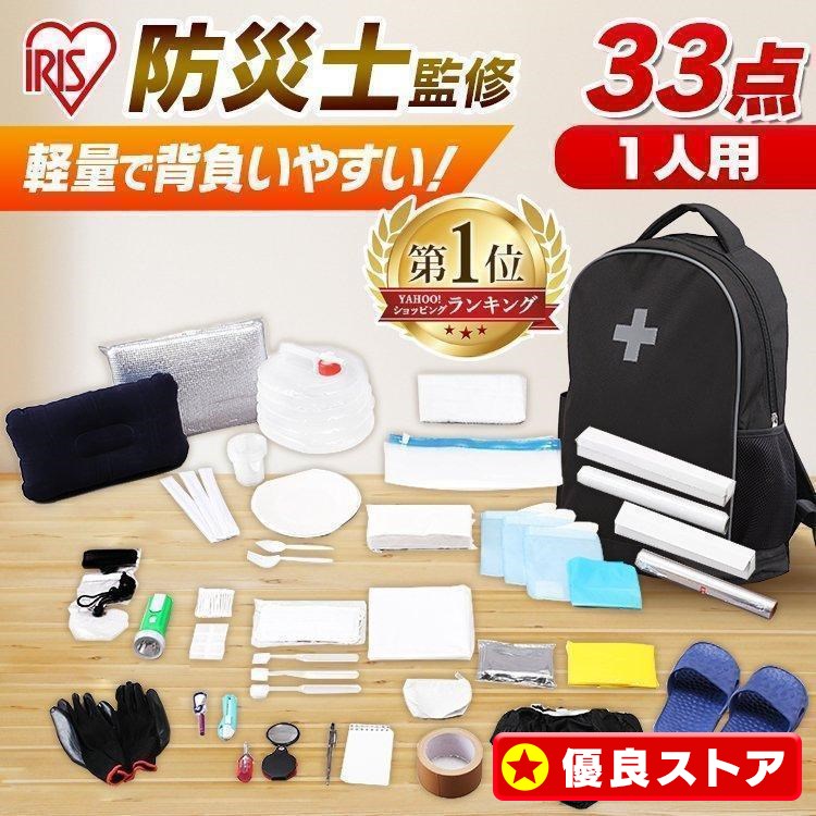 防災グッズ セット 1人用 防災セット 33点 防災リュック 避難グッズ 非常用持ち出し袋 食料なし アイリスオーヤマ BRS-33 *