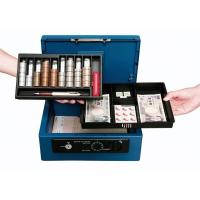 シリンダー錠とダイヤル錠のダブルロックの手提げ金庫です。シリンダー錠とダイヤル錠が付いているので、中のものを安全に保管することができます。小銭の整理に便利なコインカウンターとお札の整理に便利な札入れの2種類が付いています。また、コインカウンターはスライドして開くので、見やすくなっています。B5版の書類が入るサイズです。