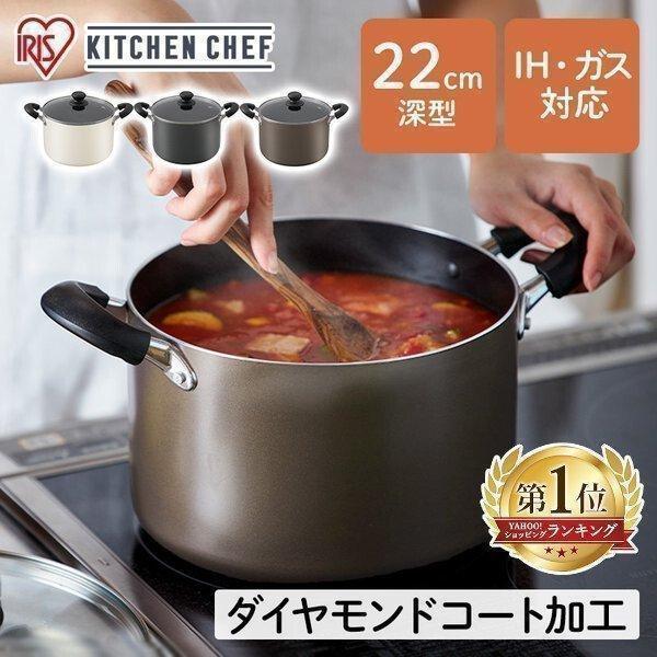(検索用:鍋 なべ ナベ 両手鍋 22cm 深型 フッ素加工 ダイヤモンドコート ガラス蓋付き 汚れにくい こびりつきにくい 調理器具 4967576587594 4967576587600 4967576587617) 2022プレゼント
