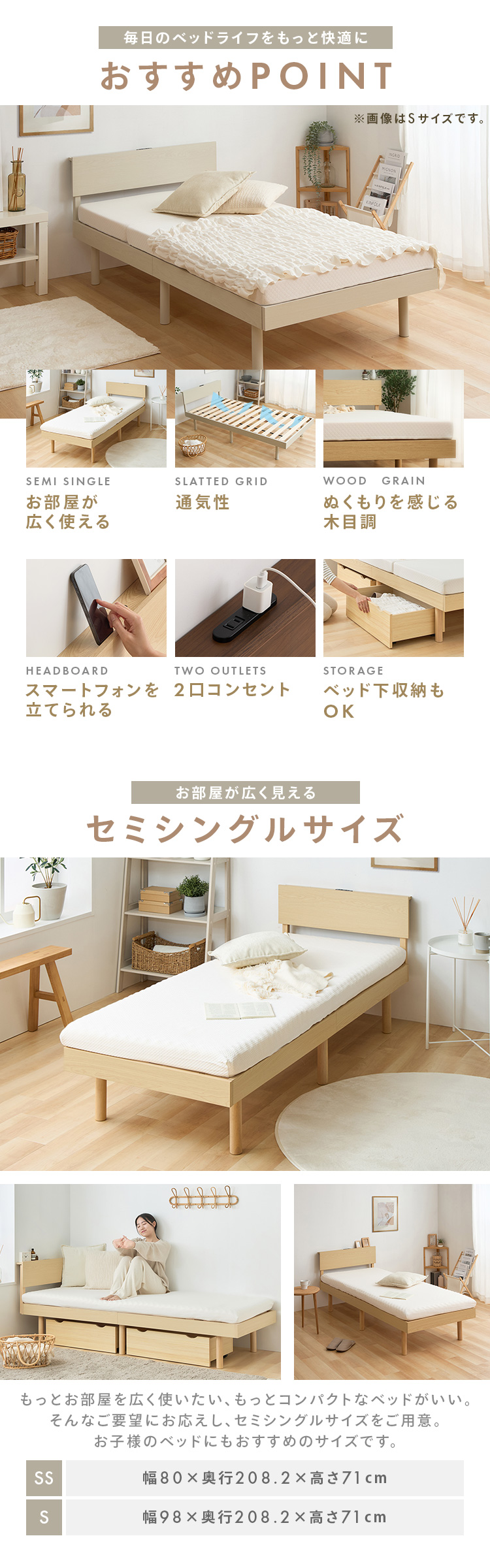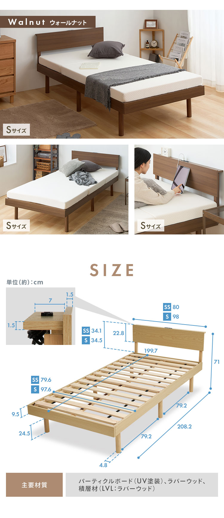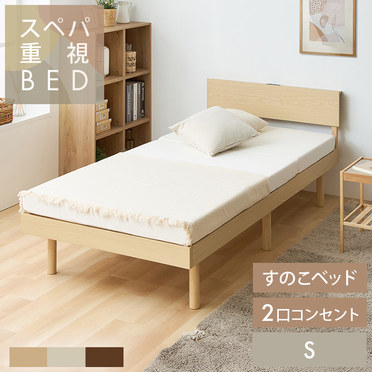 (検索用:ベッド ベット すのこベッド コンセント付き 高さ調節 宮付き シングル おしゃれ ベッドフレーム ベットフレーム )