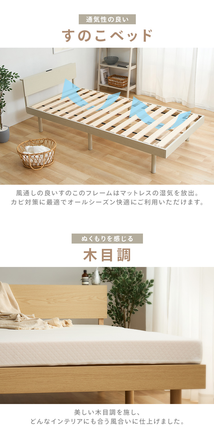 風通しの良いすのこのフレームはマットレスの湿気を放出。
