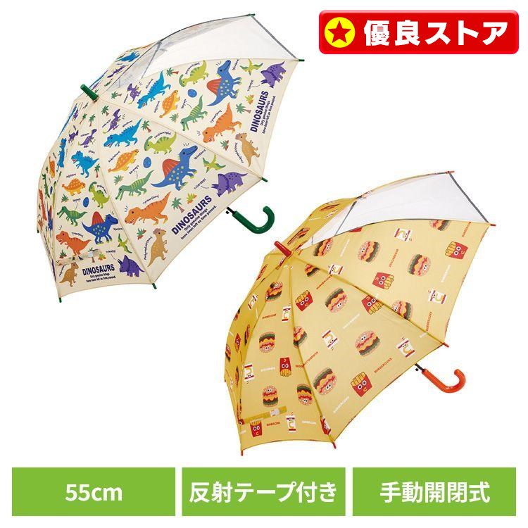 傘 子供 キッズ 子供用傘 55cm 子ども 子供傘 恐竜 バーガーコンクス 反射テープ 安全カバー付き 手動開閉式 男の子 女の子 通学用 ジャンプ傘 UB55C スケーター