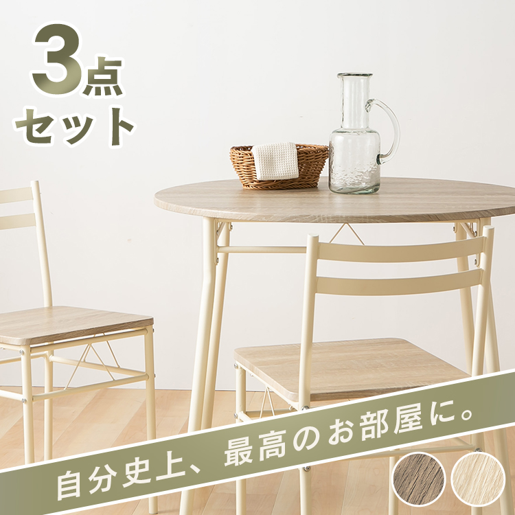 2人用にぴったりサイズの、ラウンドダイニング3点セットです。