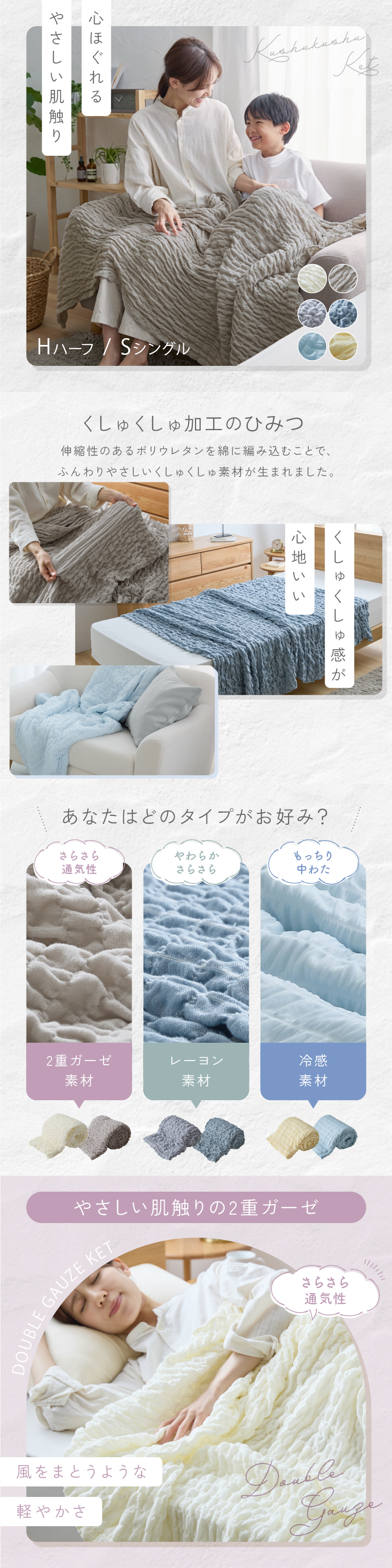 ケット くしゅくしゅ 夏用 ひんやり ブランケット 冷感 冷感くしゅくしゅふんわりケット H