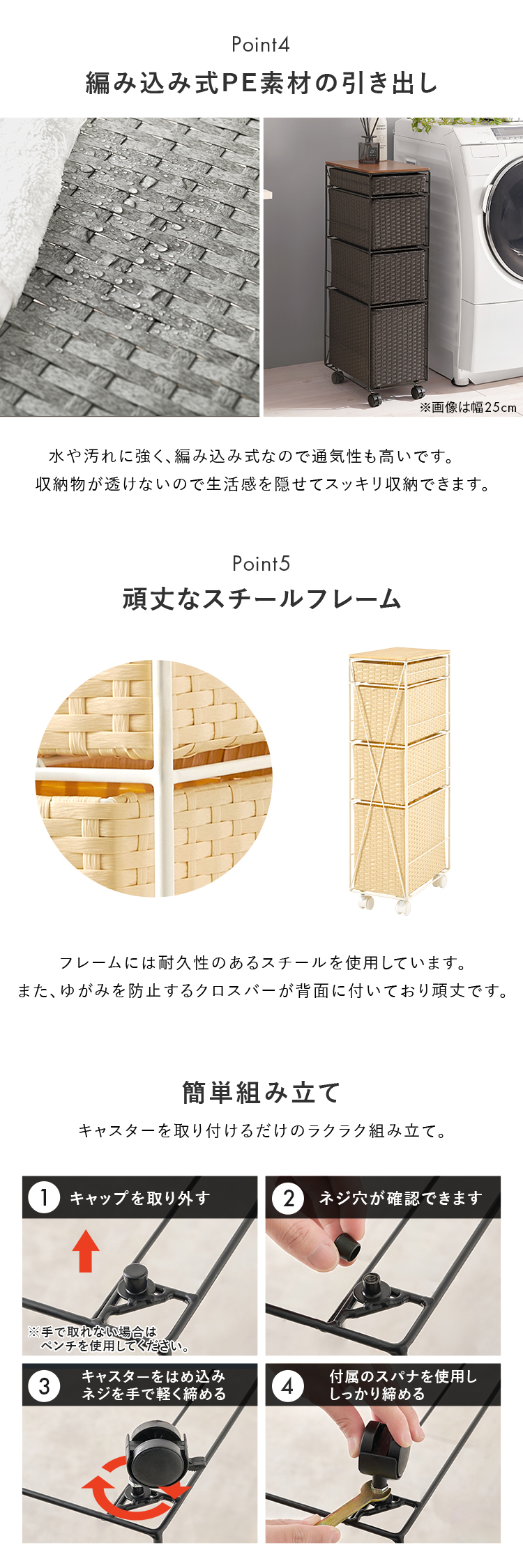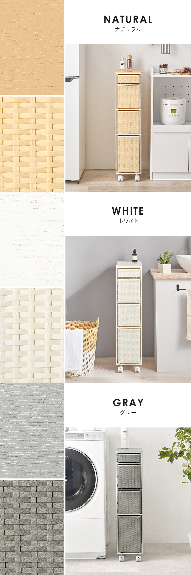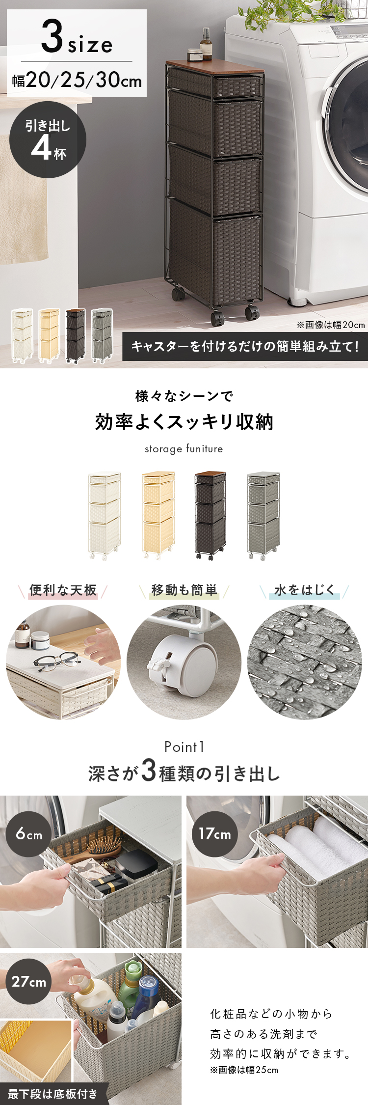(検索用:ランドリー 収納 キャスター 引き出し チェスト ラタン調 水回り おしゃれ 隙間収納 サニタリー 4934257342674 4934257342667 4934257342650 4934257342643)