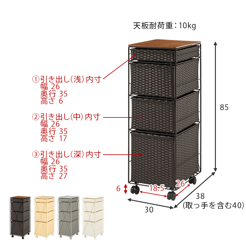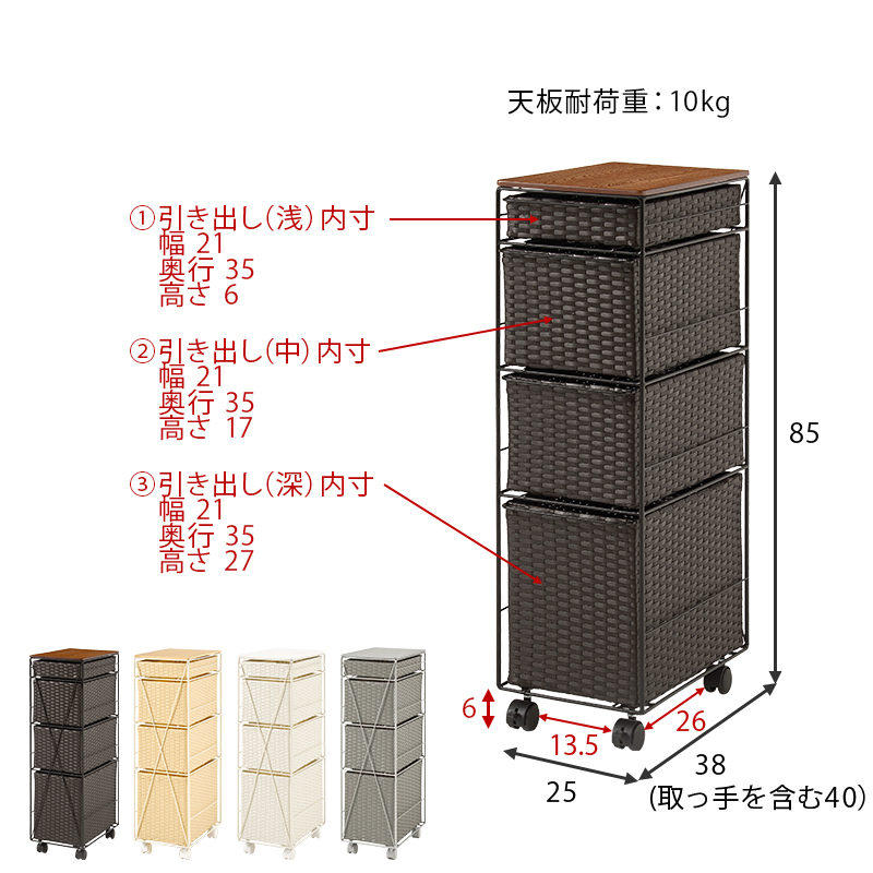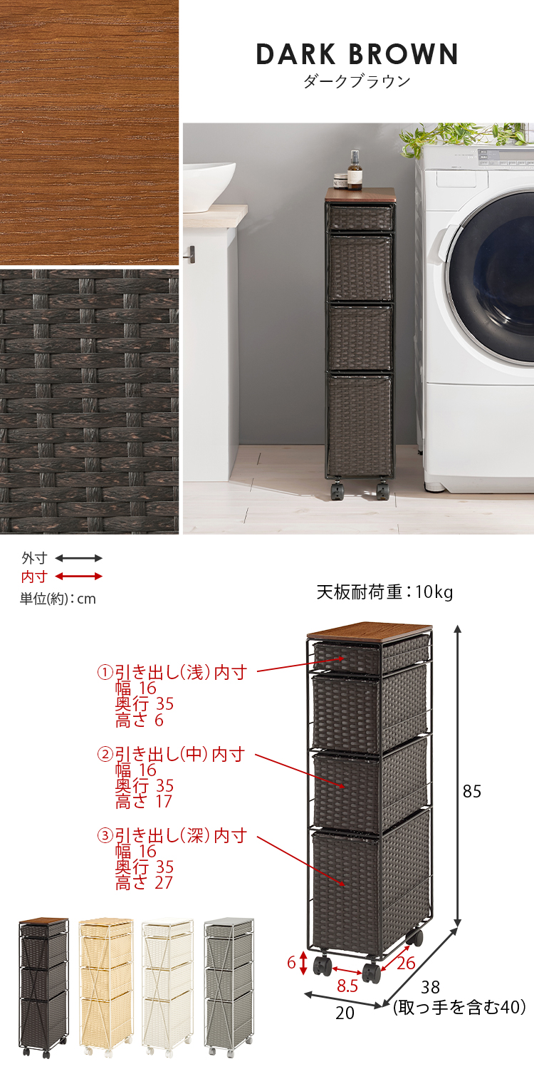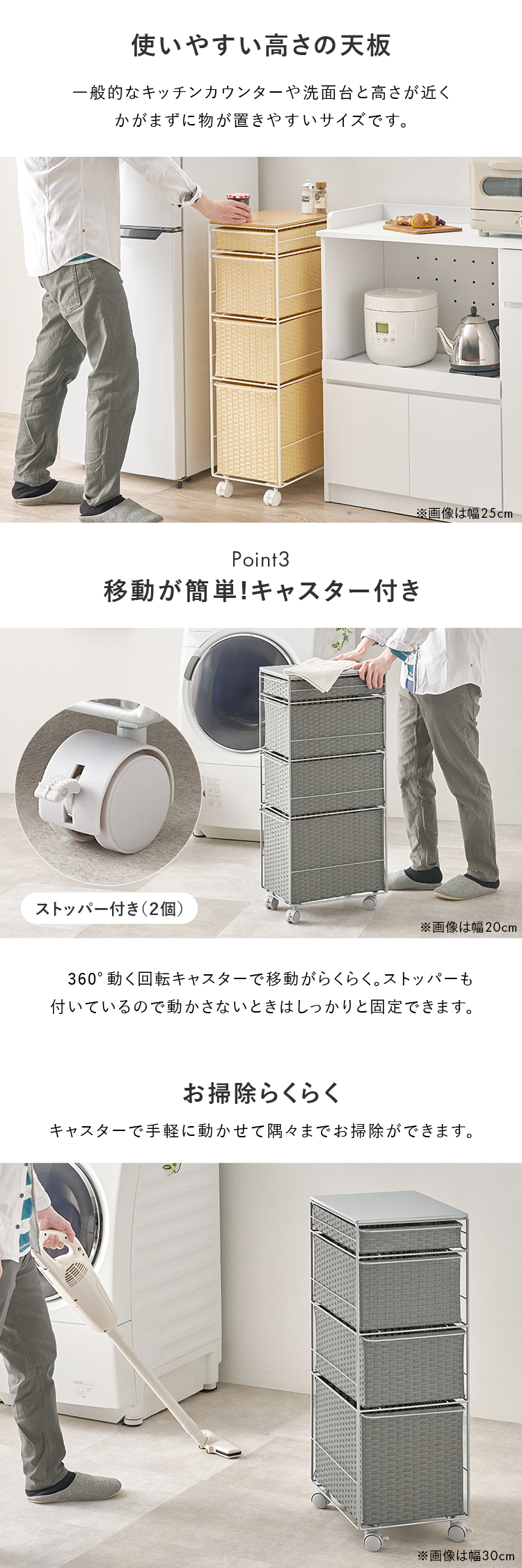 (検索用:ランドリー 収納 キャスター 引き出し チェスト ラタン調 水回り おしゃれ 隙間収納 サニタリー 4934257342674 4934257342667 4934257342650 4934257342643)