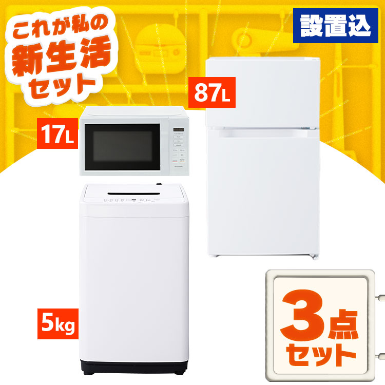 (検索用:家電セット 一人暮らし 3点セット 冷蔵庫 洗濯機 電子レンジ セット 冷凍冷蔵庫 2ドア 両開き 87L 全自動洗濯機 5kg 縦型 コンパクト 黒 )