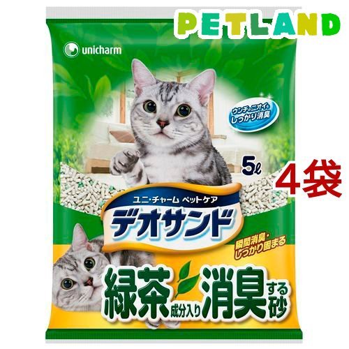 デオサンド 緑茶成分入り消臭する砂(オシッコの後に 5000mL)/猫用品/ブランド:デオサンド/【発売元、製造元、輸入元又は販売元】ユニ・チャーム ペットケア/・単品JAN:4520699651773/【デオサンド 緑茶成分入り消臭する砂の商品詳細】●オシッコ、ウンチのニオイを瞬間消臭●消臭剤プラスで香りが残らないタイプ●しっかり固まりお手入れ簡単●ペレットタイプで飛び散りにくい/cate20230