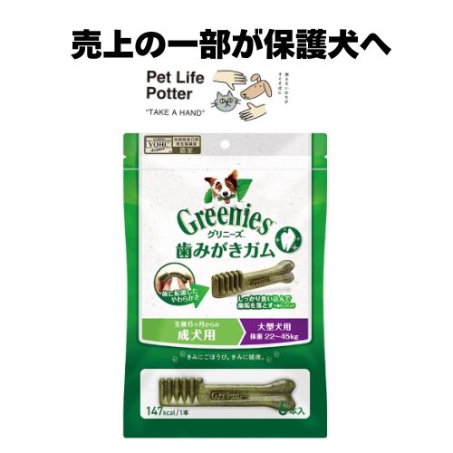【売上の一部が保護犬へ】グリニーズ プラス 成犬用 大型犬用 1パック(6本) 歯みがきガム