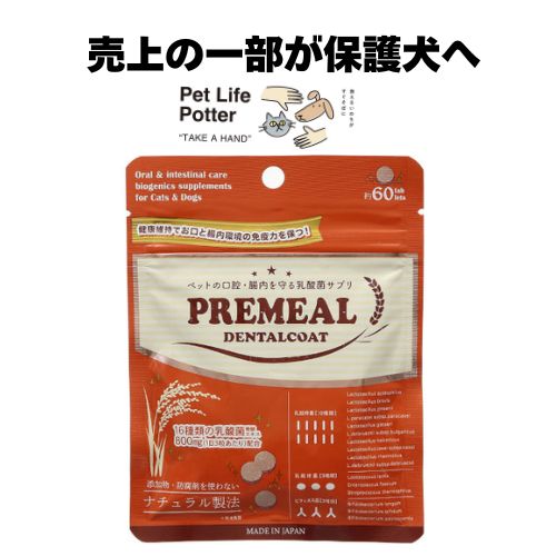 【売上の一部が保護犬へ】PREMEAL デンタルコート 犬猫用 60粒