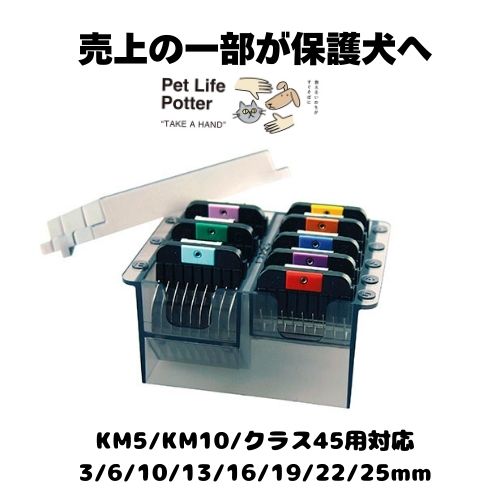 【売上の一部が保護犬へ】KMシリーズ専用ガイド・コーム (8個セット・蓋付き)KM5 KM10 クラス45 トリミング カット 替刃 アタッチメント ペット 動物