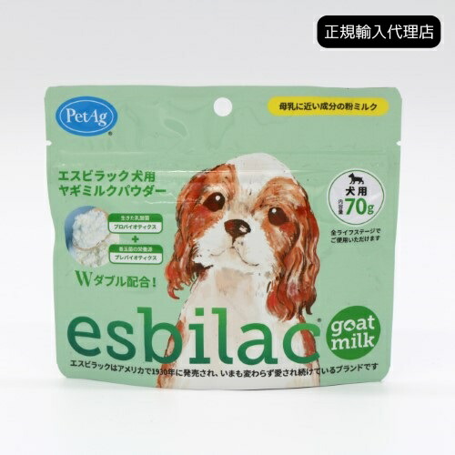 【正規輸入代理店】esbilac エスビラック 犬用ヤギミルクパウダー 70g ドッグミルク オールステージ 栄養補給 乳酸菌 ビフィズス菌 腸内フローラ 腸内環境